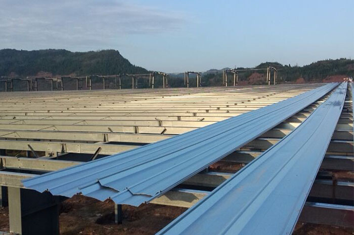 土家族自治县项目是一个大跨度厂房,采用单坡式屋面,要求现场压型彩钢瓦长度达到150米长,成都多彩承接这一项目檩条供应